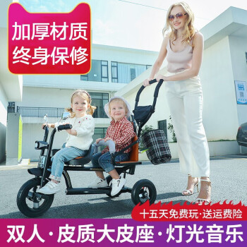 | Product name: Two person children's tricycle, two child stroller, scooter, twin baby stroller, black frame leather seat music, rotating seats, titanium empty wheels, front and rear safety | Product name: Two person children's tricycle, two child stroller, scooter, twin baby stroller, black frame leather seat music, rotating seats, titanium empty wheels, front and rear safety |