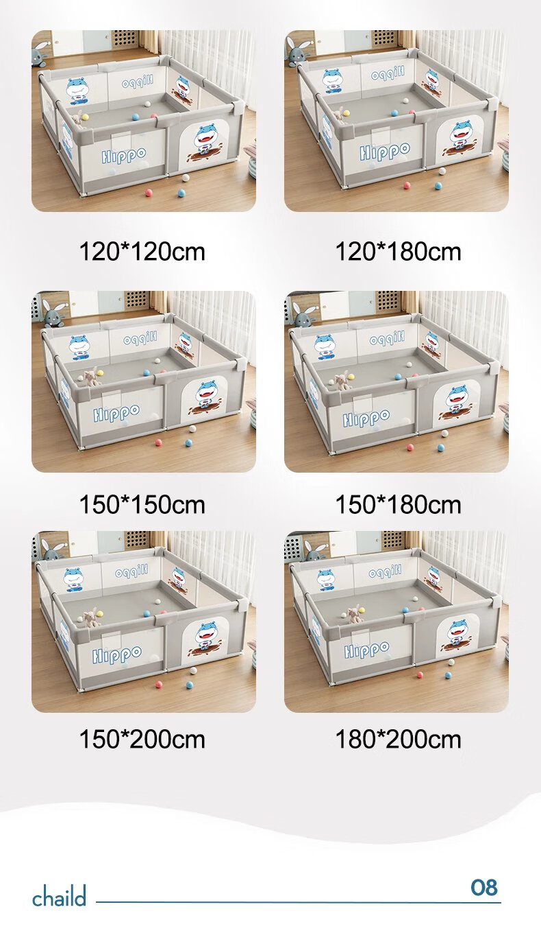 Aoyanlai Children's Fence Safety Baby Playpen Toddler proof Floor Children's Indoor Home Indoor Modern Grey 【 Inner Diameter 120 * 120 】 Full pack Cotton Eight 【 Image Price Brand Quotation 】-